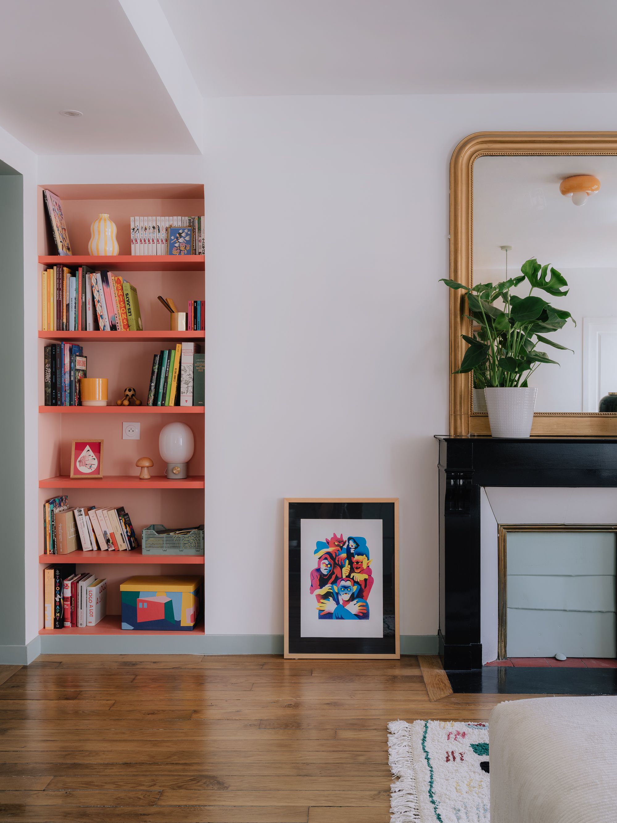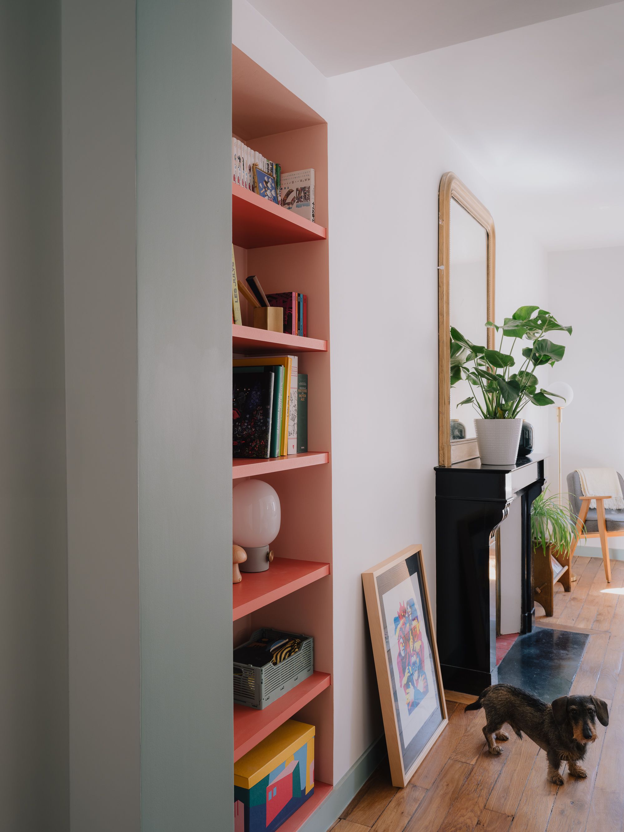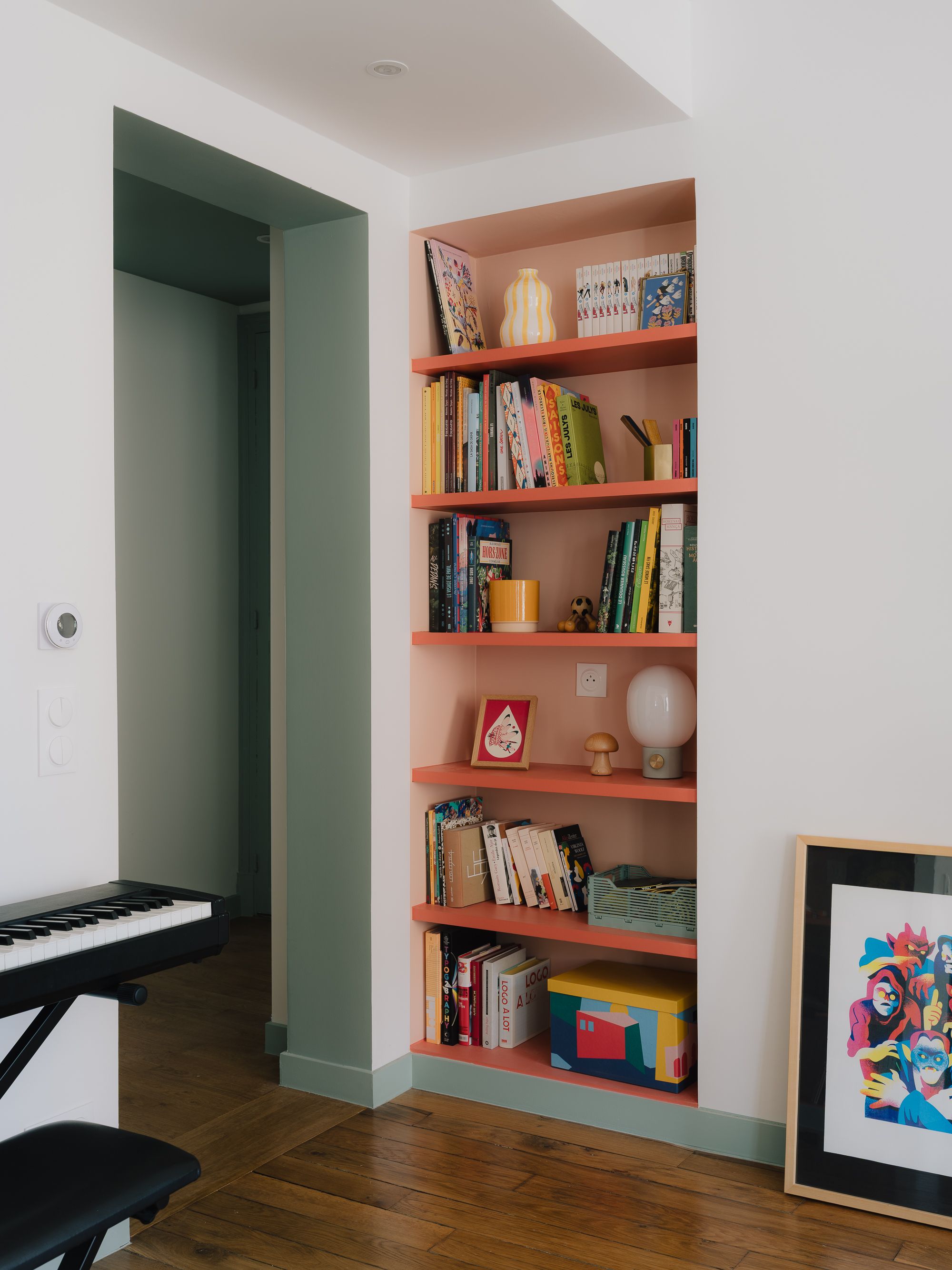 Ce projet de rénovation a consisté à repenser intégralement l’aménagement d’un appartement ancien de 54 m² pour en faire un lieu fonctionnel, chaleureux et personnalisé. Le plan a été réorganisé afin d’offrir une grande pièce de vie côté rue avec cuisine ouverte, une salle de bain compacte mais confortable, une chambre apaisante dotée de nombreux rangements et un bureau modulable pouvant accueillir un jeune enfant. L’ambiance intérieure s’inspire de l’univers pop et coloré des propriétaires : une palette pastel et acidulée, ponctuée de pièces graphiques et de détails singuliers, comme le carrelage de crédence signé par la créatrice espagnole Elisa Passino.